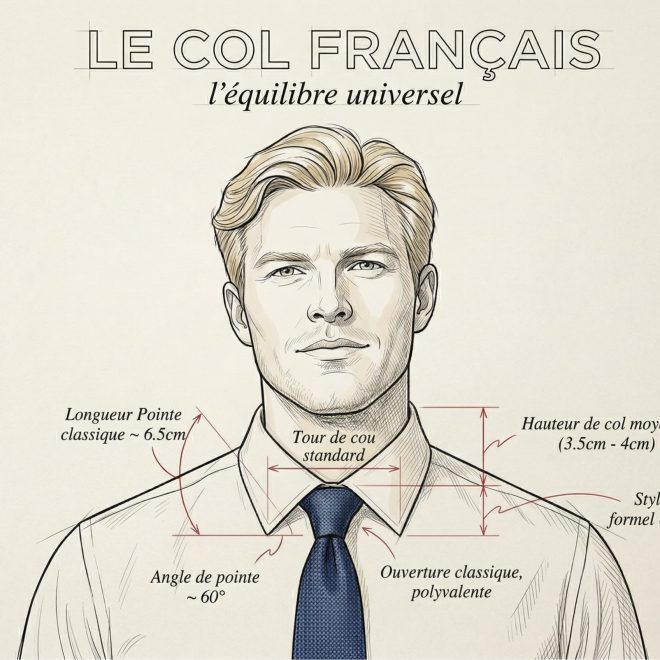 - 30 mars 2026"Si un homme est évalué par sa chemise, la chemise l’est par son col." C'est le détail crucial qui structure votre tenue et définit votre style : formel, décontracté ou résolument moderne. Vous hésitez pour un mariage ou un rendez-vous pro ? Du classique col français au prestigieux col cassé, nous décryptons chaque modèle pour vous aider à trouver la justesse absolue. Ne laissez plus le hasard dicter votre allure, découvrez l'art de choisir votre col.